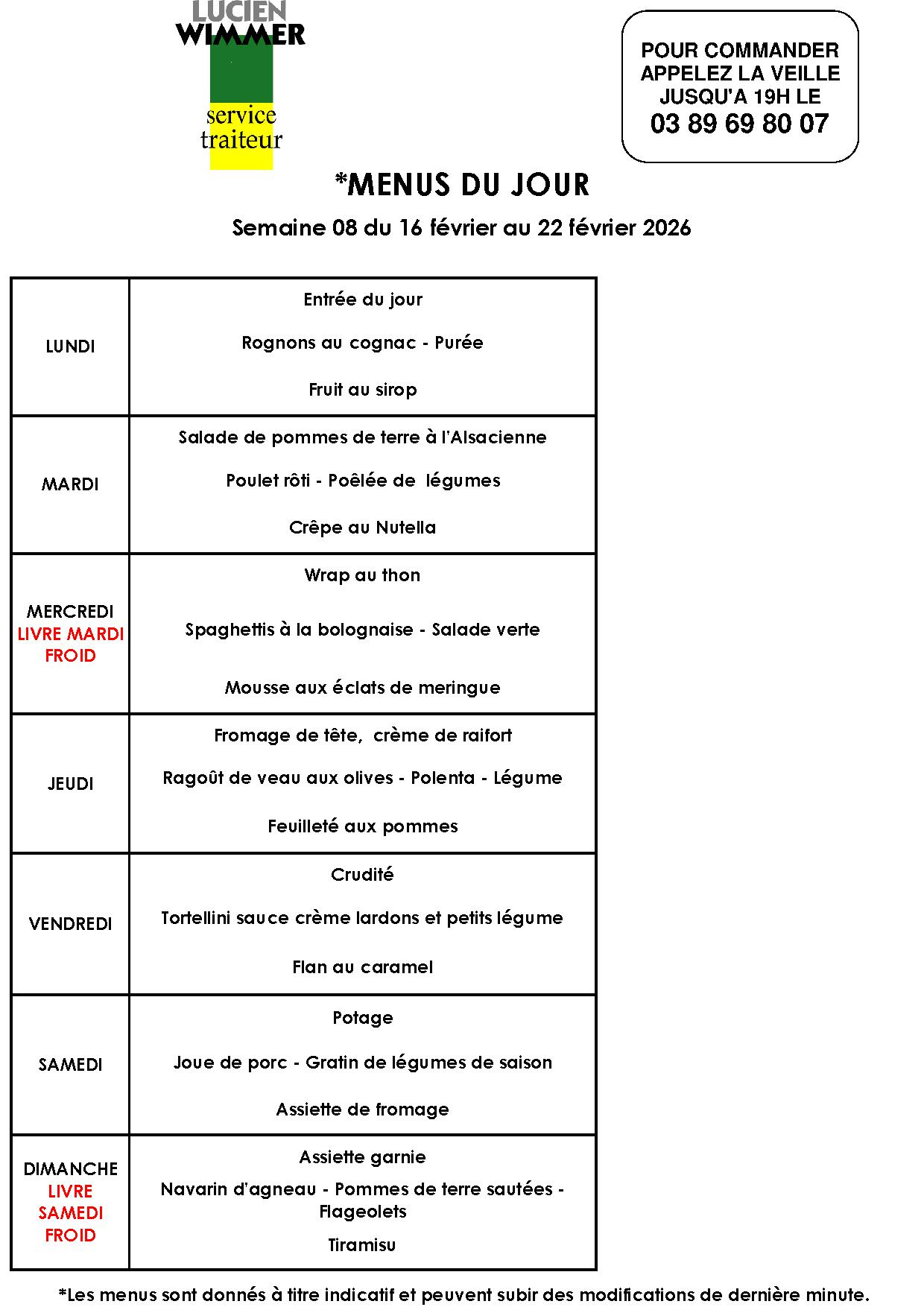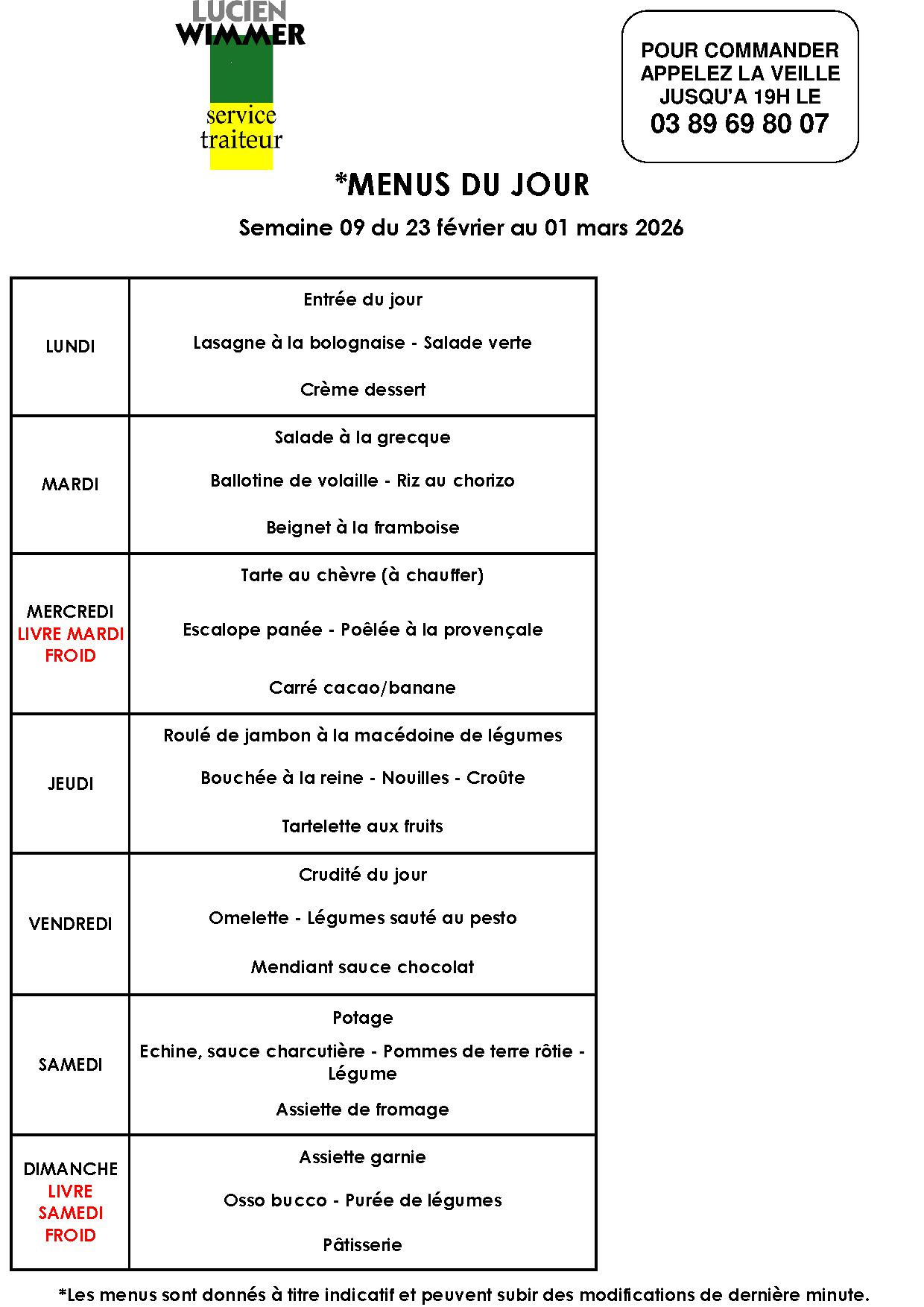 Par admin|2026-02-19T07:04:10+00:00juin 11th, 2018|Actualités, Menu|Commentaires fermés sur Le menu de la semaine