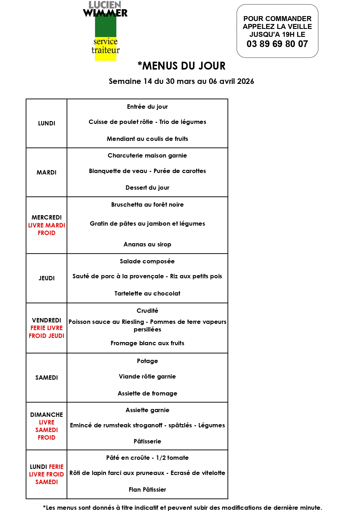 Le menu de la semaine Par admin|2026-03-26T16:18:37+00:00juin 11th, 2018|Actualités, Menu|Commentaires fermés sur Le menu de la semaine